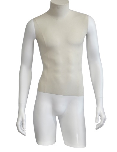 040948 BUSTO REVESTIDO EN LINO BLANCO DE HOMBRE CON BRAZOS EN BLANCO MATE