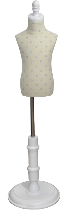 041187 BUSTO DE INFANTIL DE 2-4 AÑOS SIN CABEZA Y SIN BRAZOS EN LINO BLANCO CON FLORES AZULES