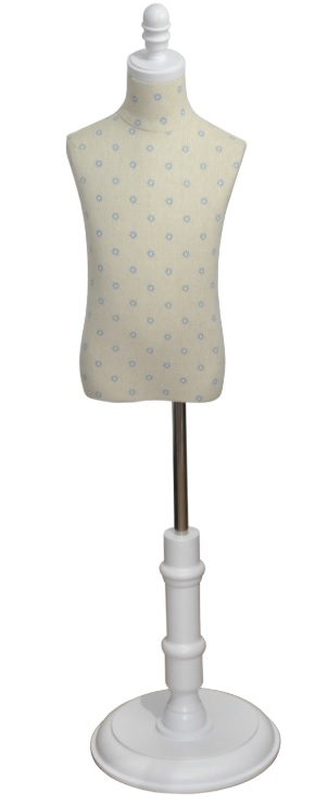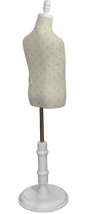 041188 BUSTO DE INFANTIL DE 4-6 AÑOS SIN CABEZA Y SIN BRAZOS EN LINO BLANCO CON FLORES AZULES