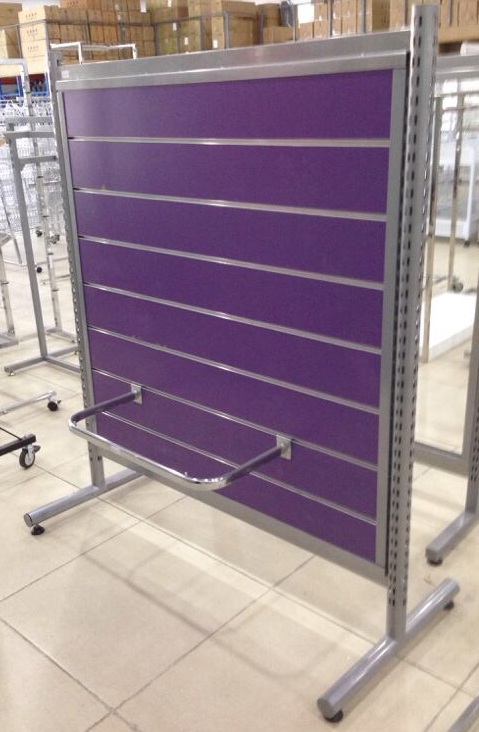 Góndola cromada en COLOR GRIS para dos paneles de lamas.