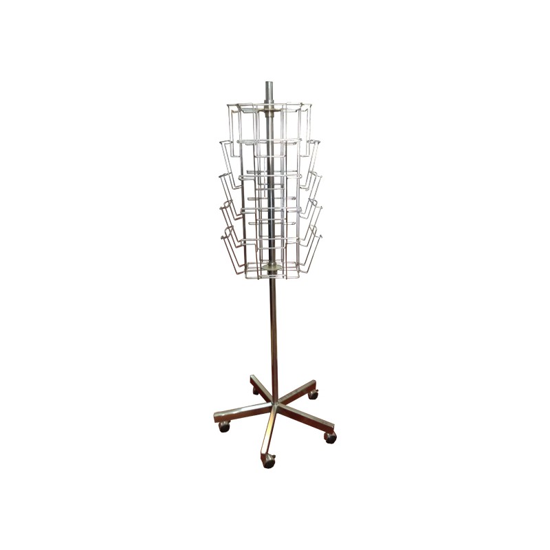 Expositor para revistas giratorio, completamente fabricado en metal cromado.