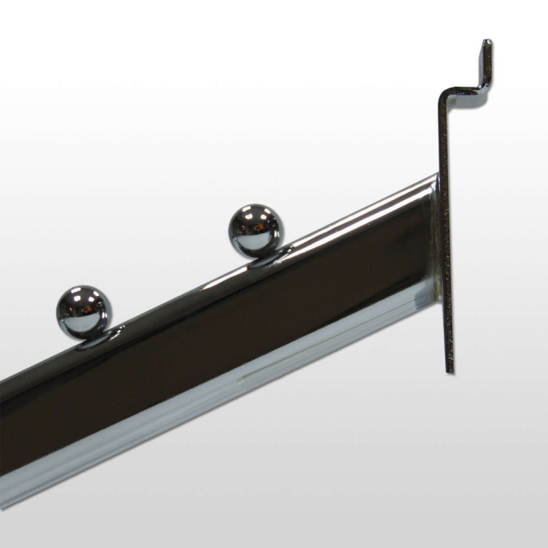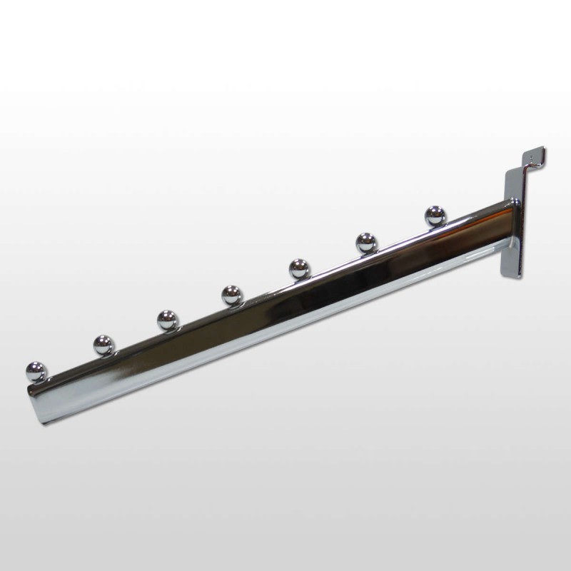 Gancho para tablero grueso inclinado con 7 bolas y 35 cm de longitud. Hierro cromado.