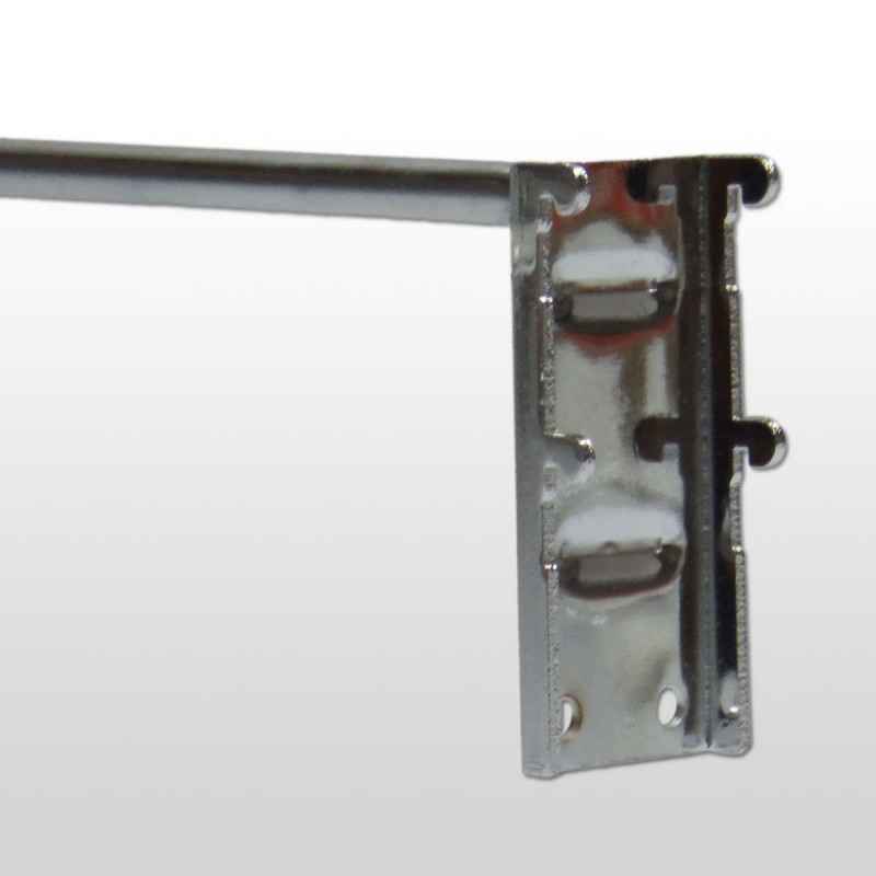 Nuestros ganchos para panel perforado están fabricados en hierro cromado y encajan perfectamente en cualquier panel perforado con orificios de 5 mm y una separación entre ellos de 25 mm.