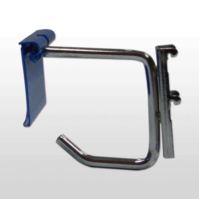 Nuestros ganchos para panel perforado están fabricados en hierro cromado y encajan perfectamente en cualquier panel perforado con orificios de 5 mm y una separación entre ellos de 25 mm.