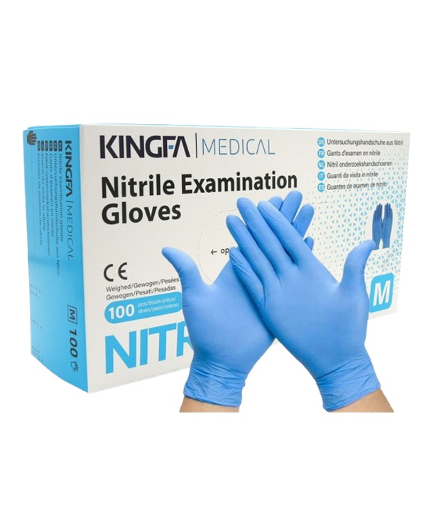 GUANTES DESECHABLE DE NITRILO KINGFA, LIBRE DE POLVO Y LATEX DE UN SOLO USO Y NO SON ESTERILES.