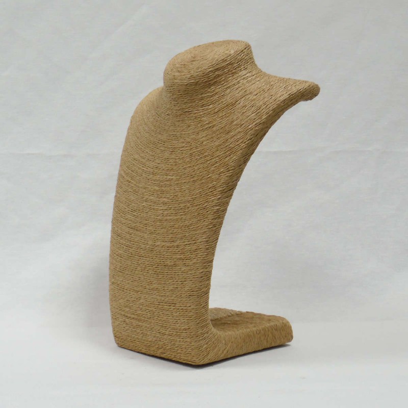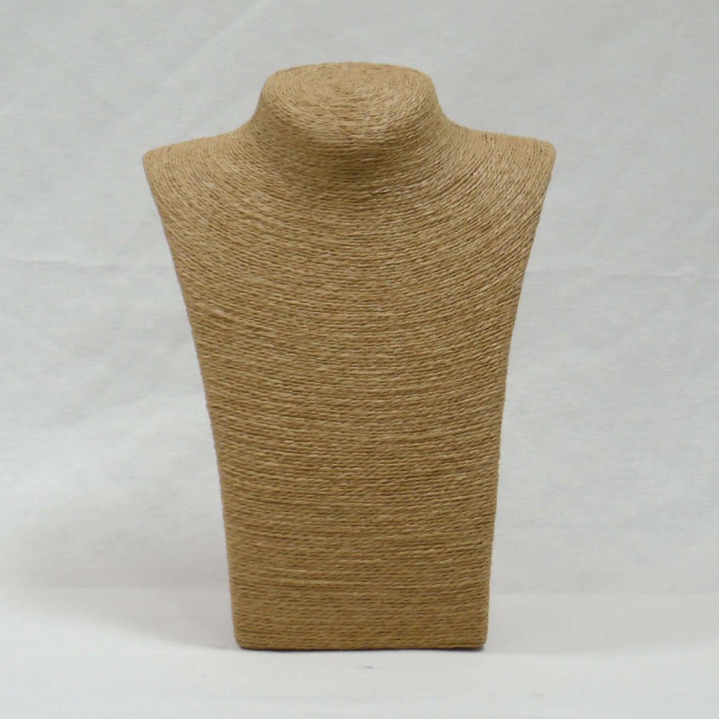 Este peto expositor pertenece a la nueva categoría de expositores con acabados en cuerda tipo esparto. Es un expositor original y muy elegante ideal para presentar collares de color oscuro.