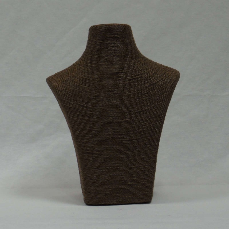 Peto expositor para collares. Acabados en cuerda de color marrón oscuro.