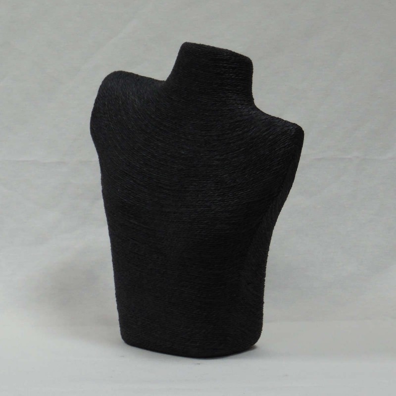 Este peto expositor pertenece a la nueva categoría de expositores con acabados en cuerda tipo esparto. Es un expositor original y muy elegante ideal para presentar collares de color oscuro.