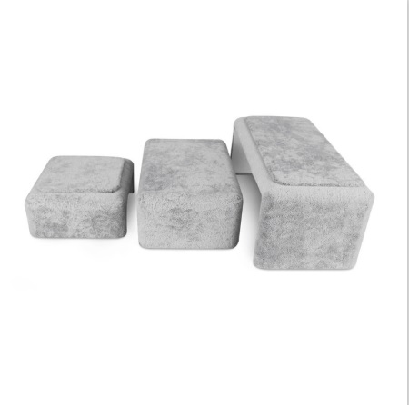 Original composición formada por tres bandejas de distintos tamaños, todas ellas terminadas en terciopelo gris.