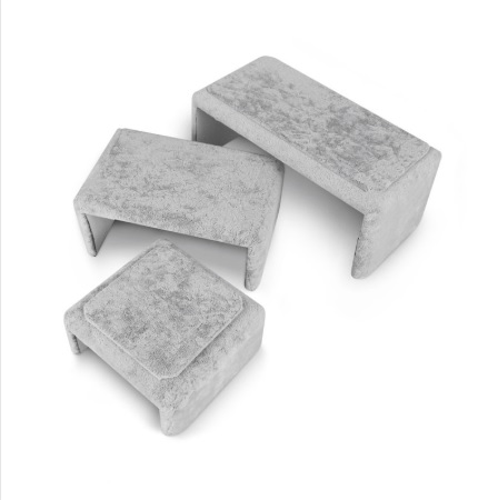 Expositor para bisutería de 3 piezas en terciopelo gris.