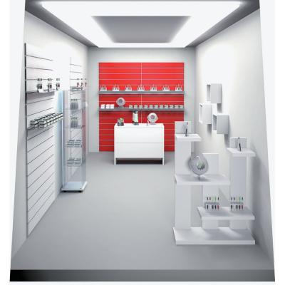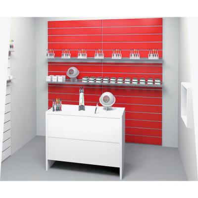 Puedes completar el panel con nuestros perfiles de plástico (ref: 44966) para cargas muy ligeras, pero el mejor complemento para este panel son nuestros perfiles de alumnio (ref: 44132 y 42882) que hacen que se puedan poner cargas más pesadas. Para un panel se necesitan 7 perfiles y, si los colocamos superpuestos, necesitaremos 15 perfiles. Se pueden cortar para adaptarlos a las medidas que necesites
