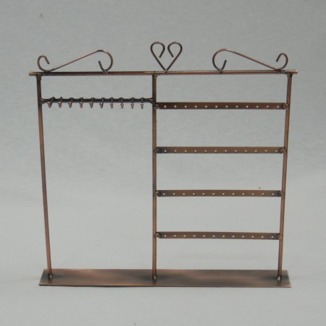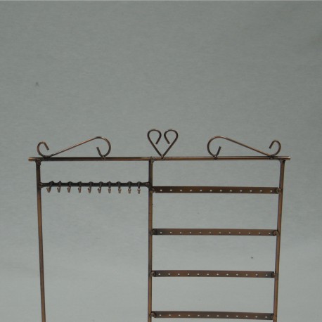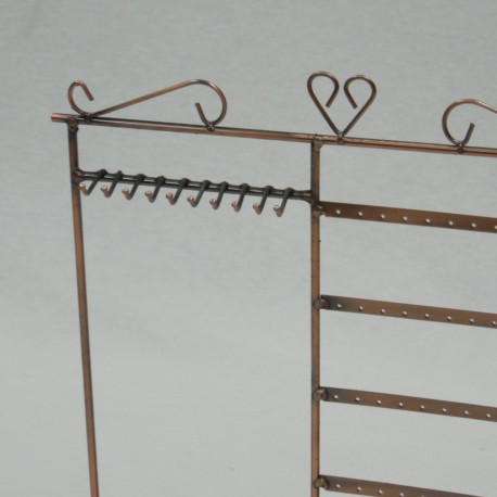 Este expositor para bisutería está completamente fabricado en metal, con un acabo en color cobre.