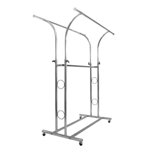 Perchero doble palos cromado. Incluye ruedas para facilitar su movilidad.