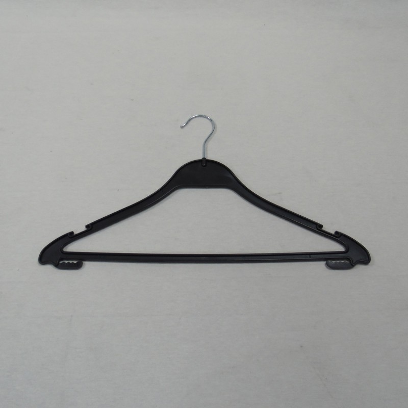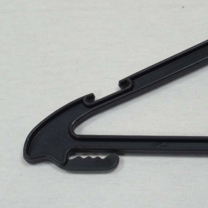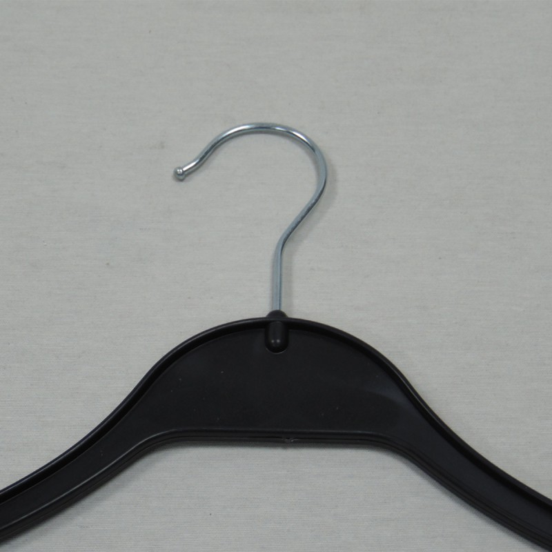 Percha fabricada en plástico negro. Gancho metálico. 45 cm.