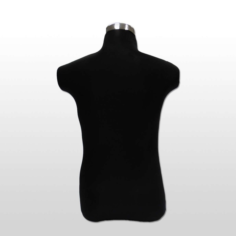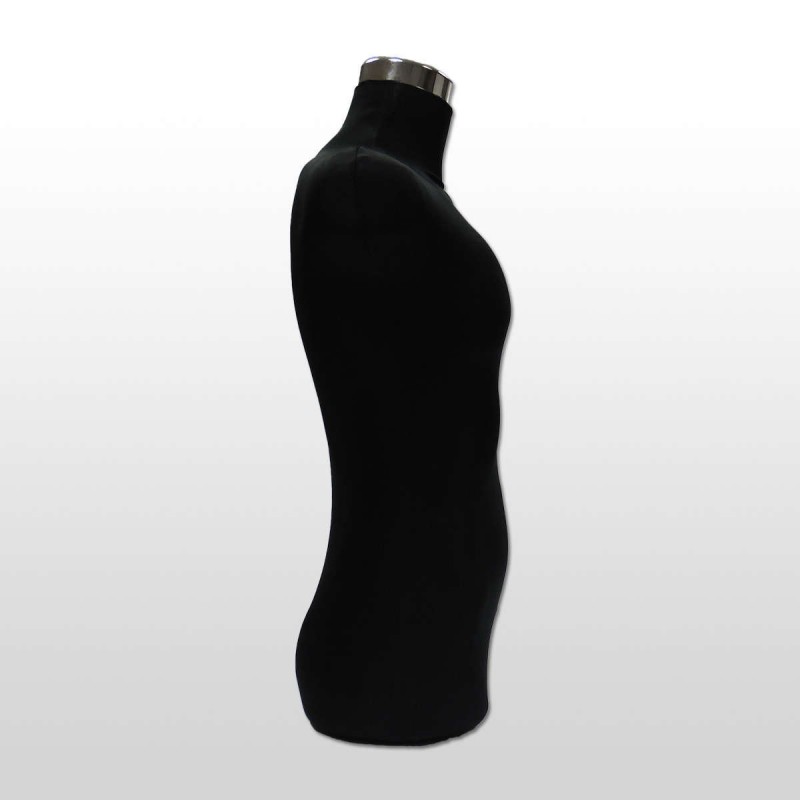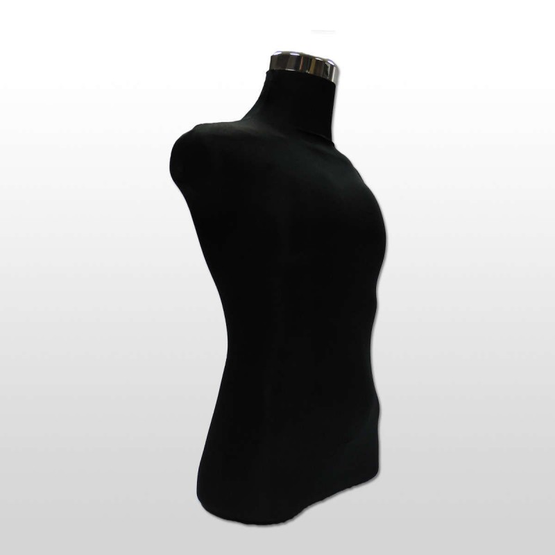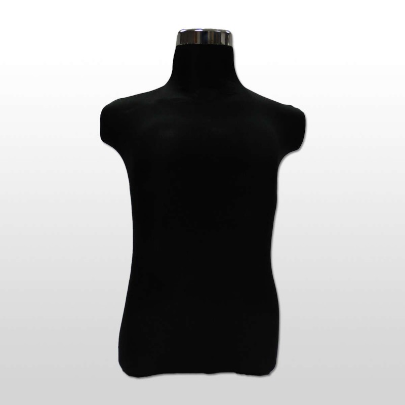 Busto de hombre fabricado en PVC y recubierto con una tela de color negro.