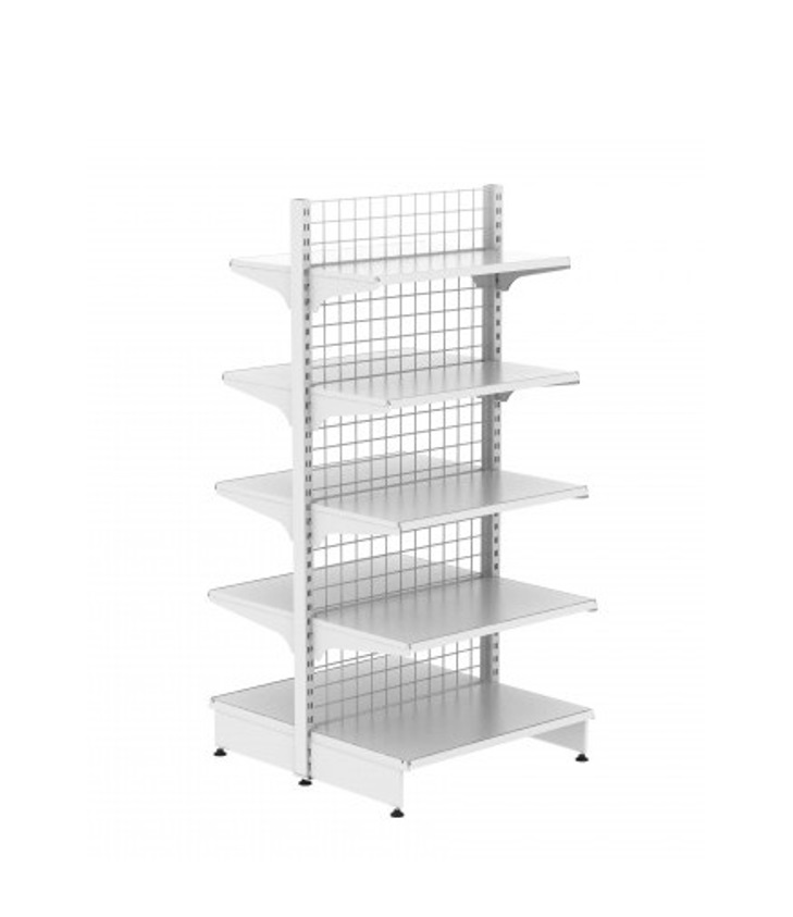 Estantería de metal blanca tipo góndola 2 caras 90x2m.