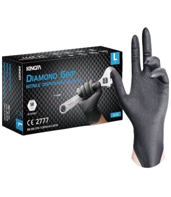 Los guantes desechables industriales de nitrilo KINGFA son la solución perfecta para tus necesidades de protección de manos. Estos guantes están diseñados para aplicaciones industriales y comerciales de alta resistencia que requieren durabilidad y comodidad. Los guantes están hechos de nitrilo de alta calidad que es libre de látex, sin polvo y resistente a pinchazos. Los guantes también son resistentes a los ácidos, resistentes al aceite y tienen una excelente elasticidad que garantiza un ajuste cómodo y seguro. Estos guantes son perfectos para tareas que requieren contacto con superficies húmedas o aceitosas. Los guantes también cuentan con una textura de diamante antideslizante y un diseño de superficie con microbolsillos que proporciona un mejor agarre y reduce la tasa de error de trabajo.