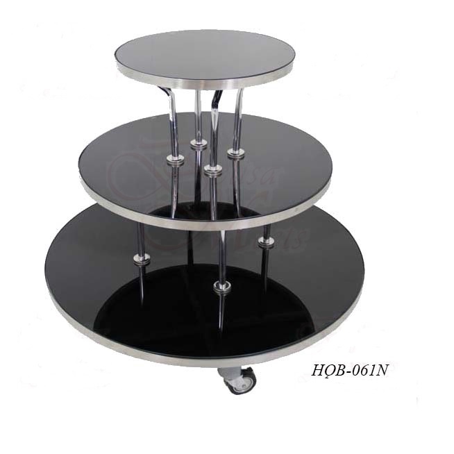 HQB-061N MUEBLE ACERO INOX.REDONDO DE 3 PLANTAS COLOR NEGRO