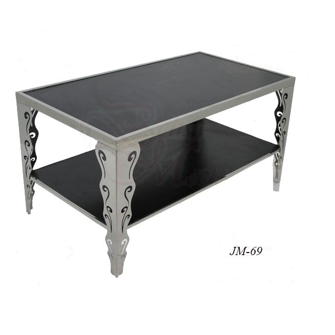 JM-69 JUEGO DE MESA 2 ALT. DECORATIVA CON PATA CROMADA CON DIBUJO EN FLOR 125*0.70*0.65CM
