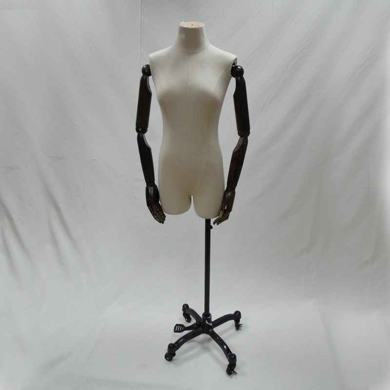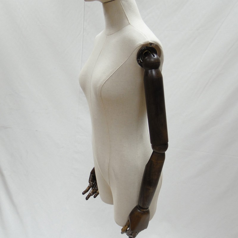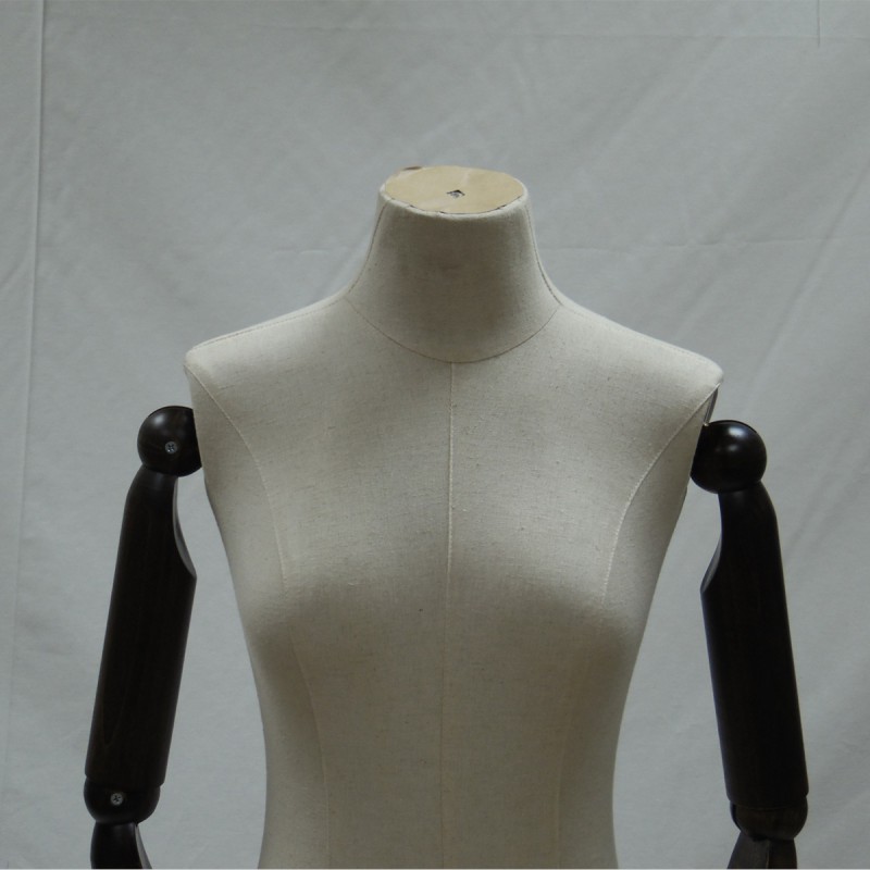 Maniquí de busto de mujer recubierto con tela beige.