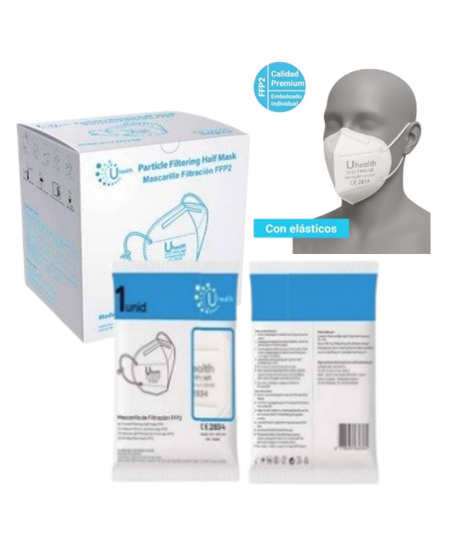 Mascarilla Protección Personal y Máxima filtración, fabricada en cuatro capas de tela no tejida y tejido filtrante, con tira nasal moldeable en acero plastificado y dos gomas de ajuste suaves (Salva orejas incluido en cada bolsita Individualizada)