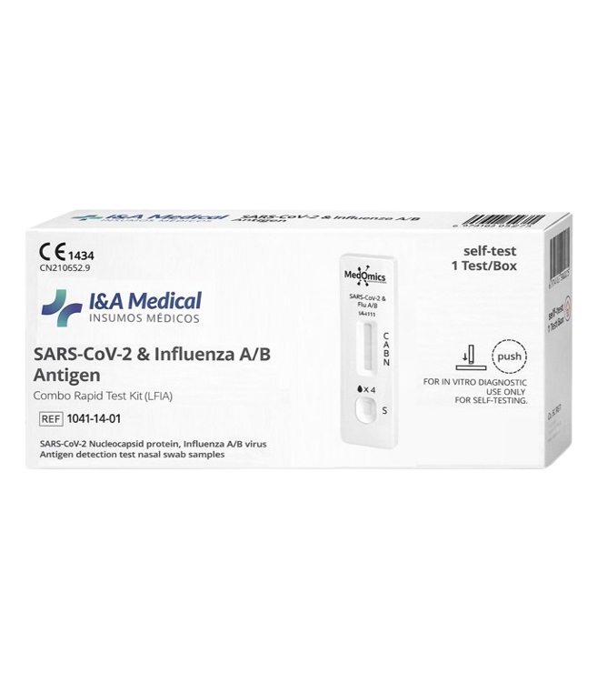 TEST 5EN1 SARS-COV2, INFLUENZA A/B, ANTIGENO COMBO TEST KIT I&A MEDICAL (VENTA EXCLUSIVA FARMACIA Y PROFESIONALES)