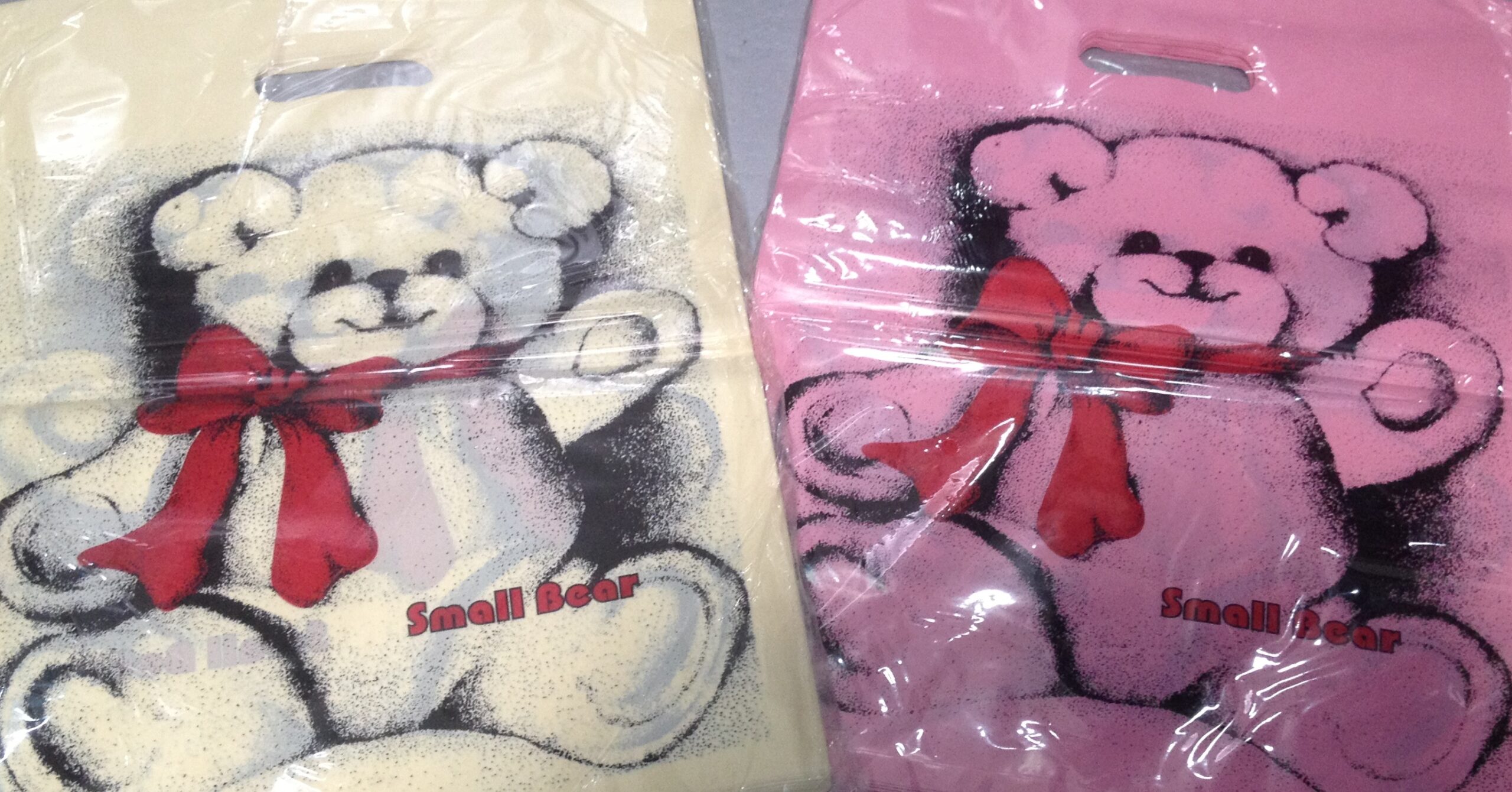 TR-2002-2 PAQUETE 50 PCS BOLSAS ASA TROQUELADA DE PLASTICO MODELO OSITOS BEIGE O ROSA 30*40