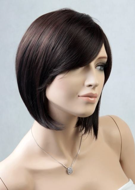 ZL93-2-33 PELUCA CORTA MORENA CON REFLEJOS CASTAÑOS Y FLEQUILLO AL LADO